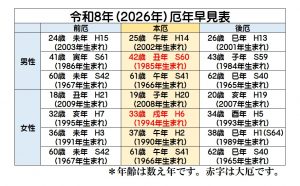 2026厄年早見表